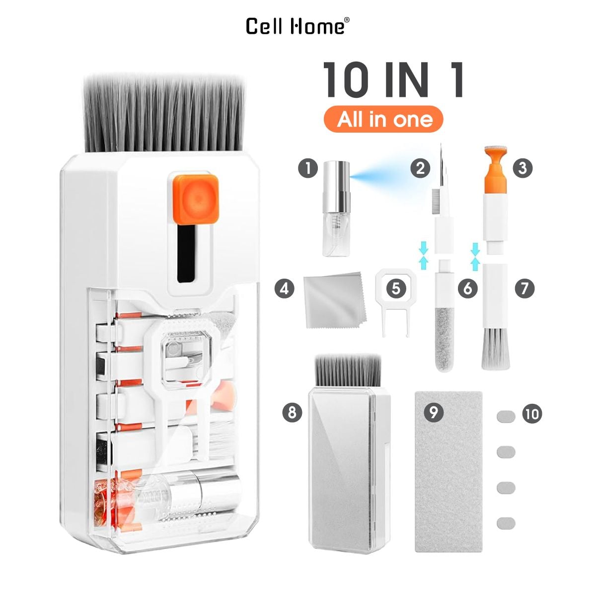 Bạn có đang mệt mỏi vì việc giữ cho thiết bị điện tử luôn sạch sẽ? Bộ vệ sinh 10 trong 1 của Cell Home sẽ là giải pháp tối ưu cho nhu cầu làm sạch đồng thời màn hình, bàn phím, máy tính, điện thoại, tai nghe,.. Kết hợp các công cụ chuyên dụng như chổi mềm, khăn lau vi sợi, kẹp gắp và dung dịch vệ sinh để làm sạch sâu và an toàn cho mọi bề mặt. Với đầu kim loại, đầu tăm bông tròn, chổi cọ sợi nhỏ bạn có thể dễ dàng làm sạch từng ngóc ngách của các thiết bị như bàn phím cơ, tai nghe, điện thoại và cả những khe hẹp khó tiếp cận.