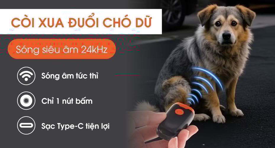 Còi đuổi chó có khả năng phát ra sóng siêu âm tần số cao 24kHz, kết hợp chip vi xử lý tăng cường công suất, tạo thành âm thanh cộng hưởng liên tục trong phạm vi 200–400m. Đây là dải tần mà tai người không nghe thấy nhưng lạii. Tần số này được chia thành 60 phân đoạn mỗi giây, nghĩa là âm thanh liên tục biến thiên, không lặp lại một cách đơn điệu, từ đó tránh việc chó “quen” hay “không phản ứng nữa”. Điều này đặc biệt quan trọng khi đi bộ buổi tối, chạy bộ, hay khi trẻ nhỏ và người già phải đối diện với chó lạ thả rông. Các sóng được khuếch tán 360 độ, hỗ trợ xua đuổi trong mọi hướng, rất phù hợp cho môi trường đông xe hoặc thiếu ánh sáng. Bạn yên tâm mang theo mỗi ngày mà vẫn đảm bảo hoàn toàn không gây hại cho con người, không ảnh hưởng đến sức khỏe, không hóa chất, không tiếp xúc trực tiếp.