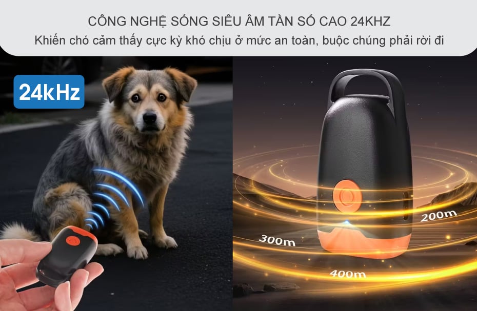 Công nghệ sóng siêu âm tần số cao 24kHz với chip tăng cường công suất – xua đuổi chó ngay lập tức