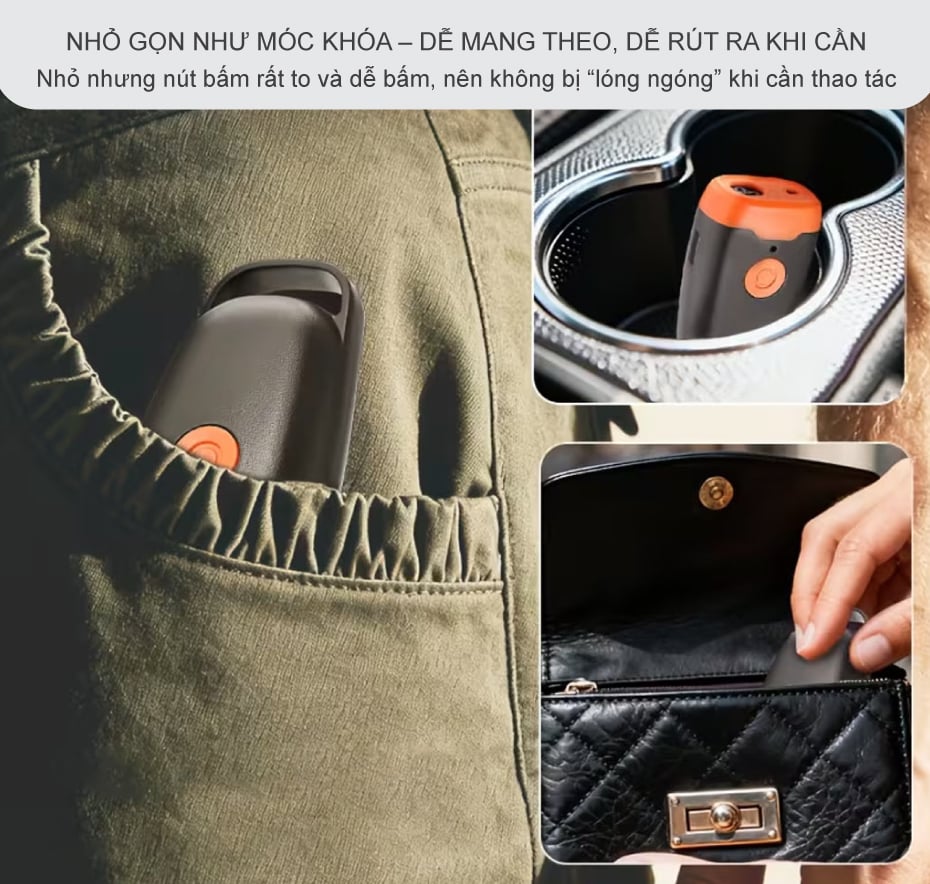 Nhỏ gọn như móc khóa – dễ mang theo, dễ rút ra khi cần, cầm chắc tay
