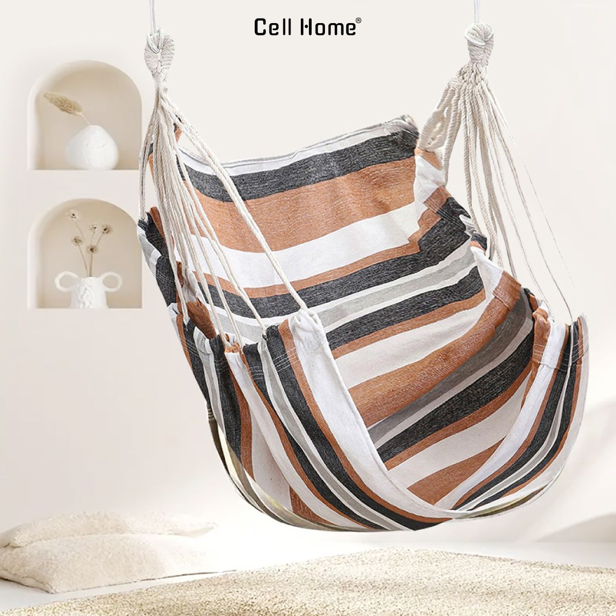 Ghế võng Cell Home dễ dàng treo và sử dụng cho đa dạng các không gian như phòng ngủ, phòng khách, ban công hay sân vườn, kể cả phòng kí túc xá,.. Ghế võng này không chỉ mang đến sự thoải mái tối đa mà còn là điểm nhấn tinh tế, góc sống ảo cho mọi không gian.