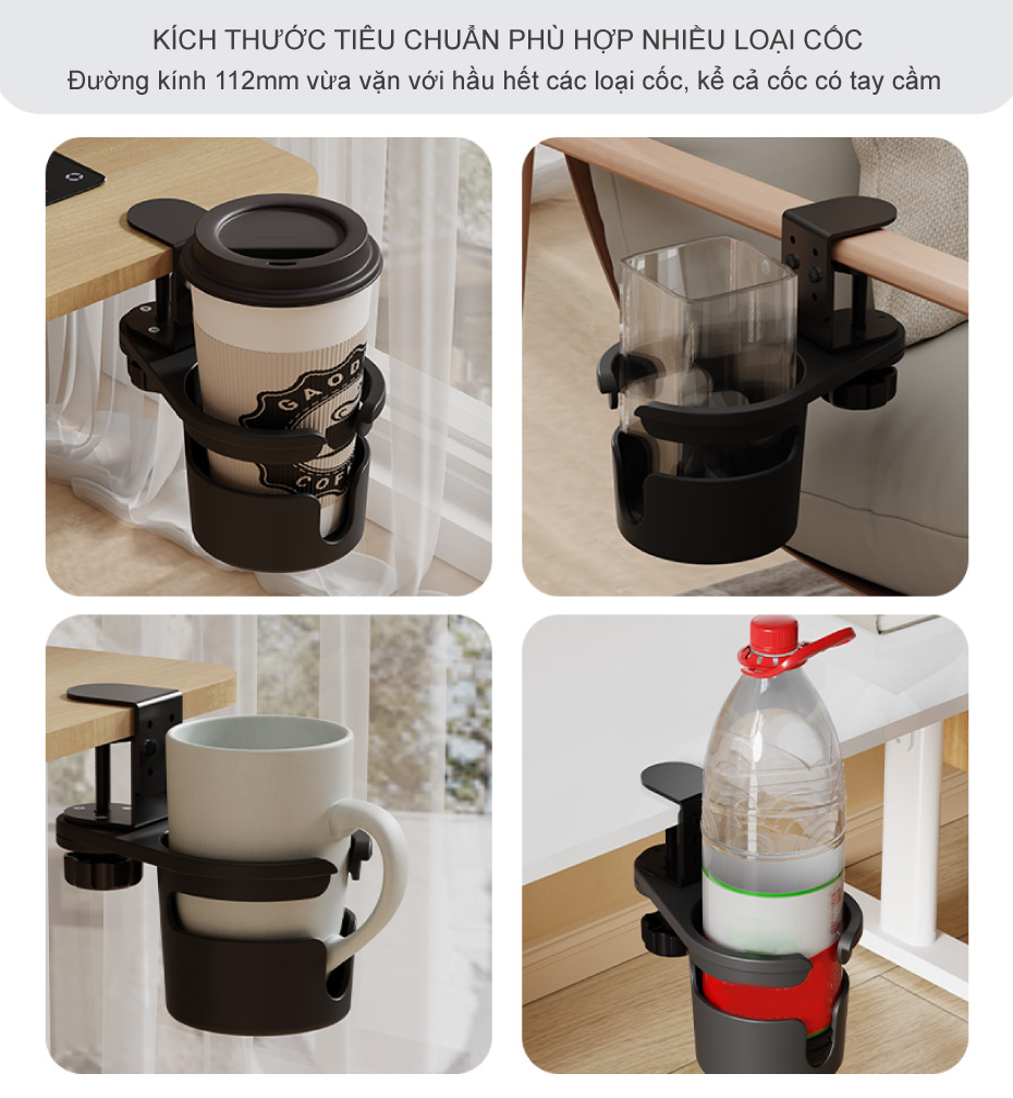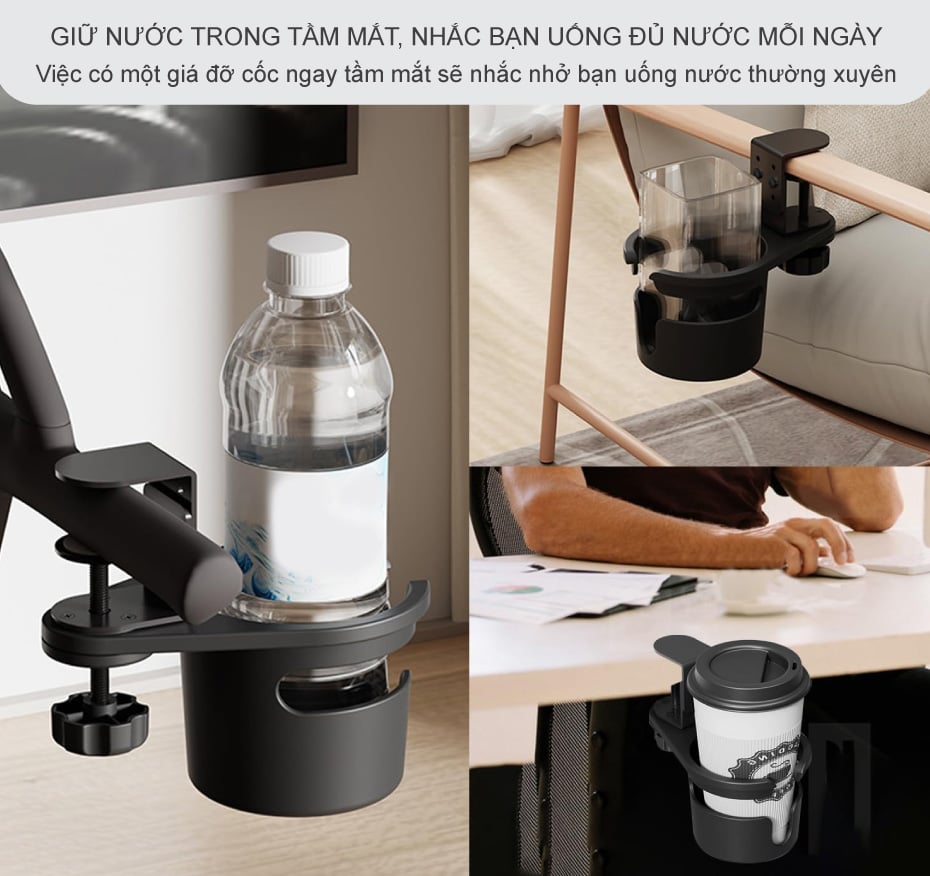 Giá đỡ cốc ly nước gắn kẹp bàn làm việc xoay 360 độ đa năng – Giữ cốc nước luôn trong tầm tay: