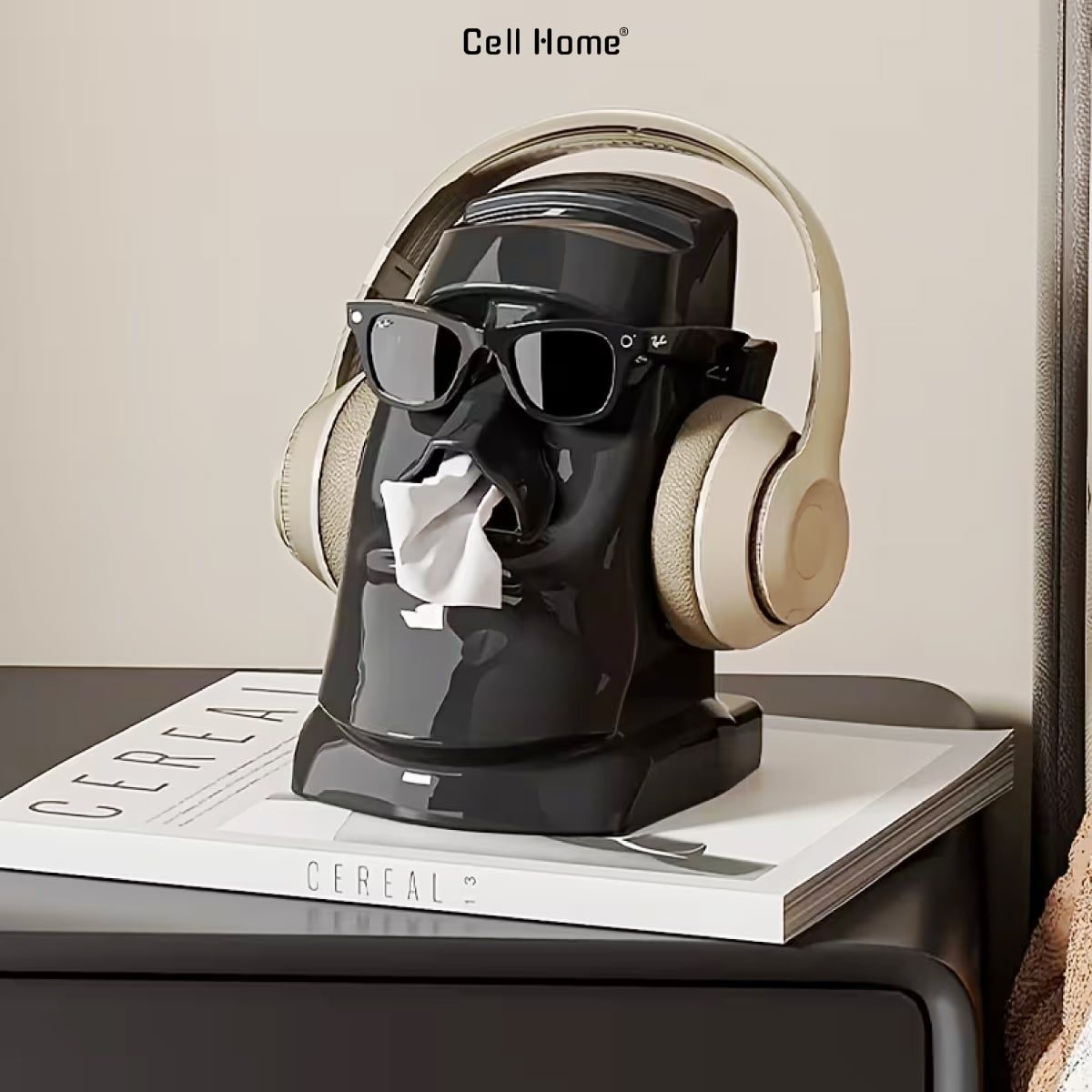 Hộp đựng khăn giấy kiêm giá đỡ tai nghe, mắt kính tượng Moai – Phụ kiện trang trí bàn làm việc độc đáo, có "chất riêng":