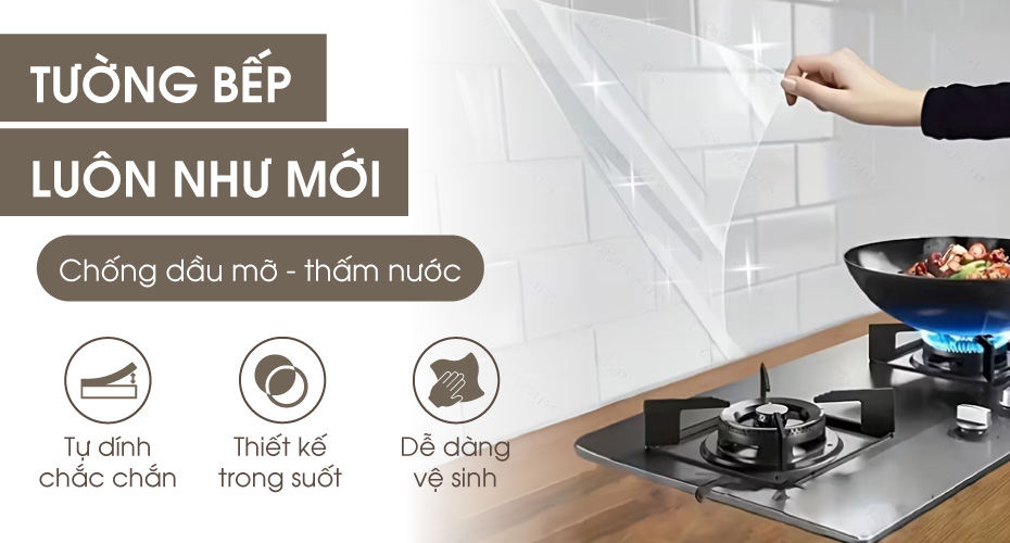 Việc vệ sinh dầu mỡ bám trên tường bếp thường tiêu tốn nhiều thời gian và công sức, nhưng vẫn khó tránh khỏi tình trạng bề mặt bị xuống cấp và xỉn màu theo thời gian. Để khắc phục triệt để vấn đề này, miếng dán bảo vệ bếp trong suốt đã ra đời. Đây là giải pháp tối ưu giúp chống thấm nước, ngăn chặn dầu mỡ hiệu quả, giúp không gian bếp luôn giữ được vẻ sáng bóng và bền đẹp như mới.