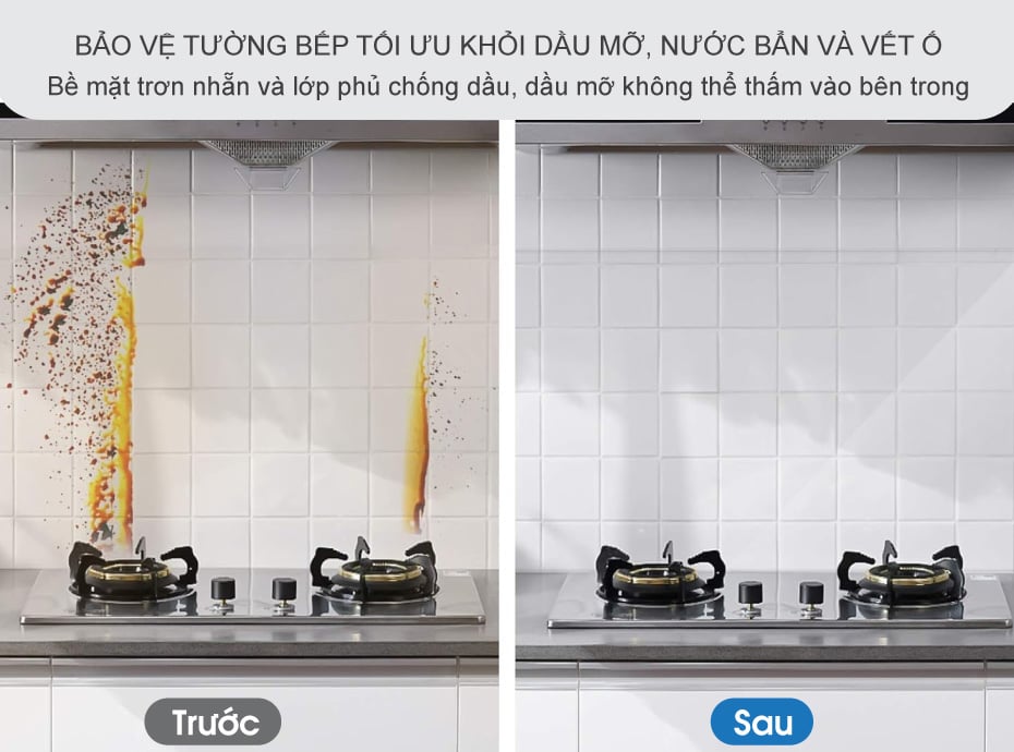 Bề mặt trơn giúp lau chùi cực kỳ nhanh chóng - Chống dầu mỡ, chống thấm nước