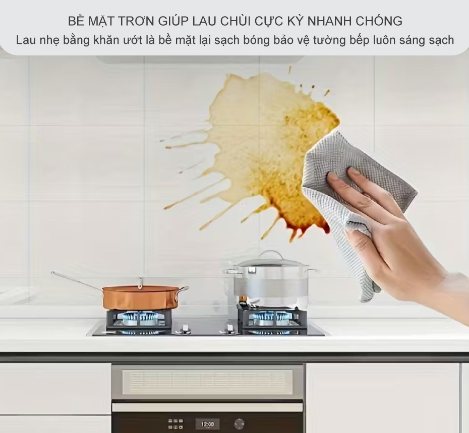Điều này sẽ đăc biệt tiết kiệm thời gian, khi nhiều người không có quá nhiều thời gian dành cho việc lau dọn bếp sau mỗi bữa ăn. Không cần phải chờ vết bẩn khô hay dùng đến miếng cọ rửa cứng, chỉ việc lau nhẹ bằng khăn ướt là bề mặt lại sạch bóng như mới. Nhờ đó, bảo vệ tường bếp luôn giữ được vẻ sáng sạch, không bị ố vàng hay xuống cấp theo thời gian.
