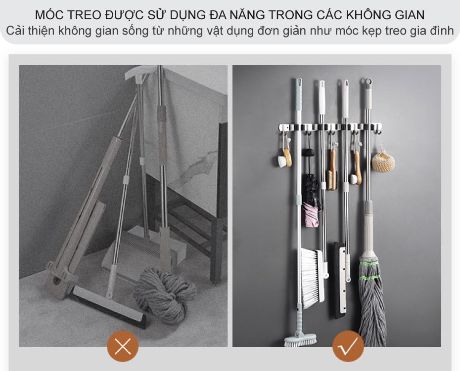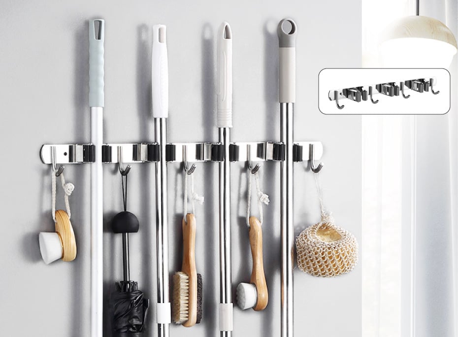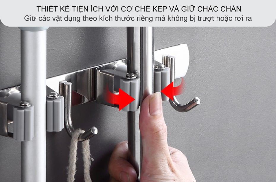Nếu như xưa giờ bạn đã quen với việc treo hoặc để chổi và cây lau vào một góc nhà nhưng việc này sẽ làm không gian mất thẫm mỹ và những vật dụng cũng khó được giữ khô ráo nhanh vậy nên móc treo cây lau nhà tắm đã được ra đời giúp việc treo giữ vật dụng gọn gàng bằng cơ chế kẹp sẽ giữ các đồ dùng sẽ được sắp xếp ngay ngắn trên tường nhà.