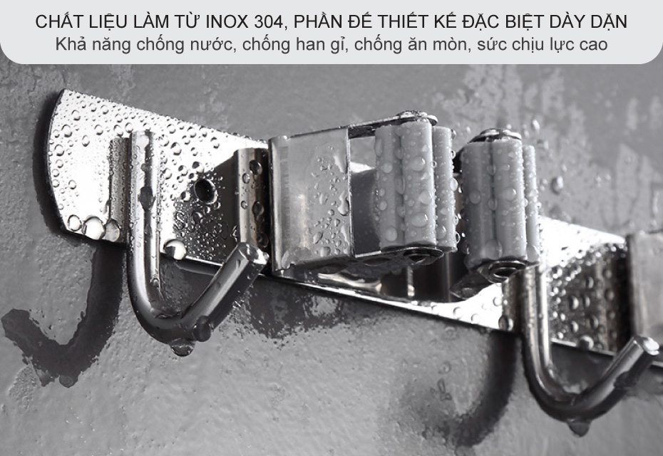 Móc treo chổi cây lau nhà móc treo nhà tắm đa năng inox 304 dán tường kẹp siêu chắc