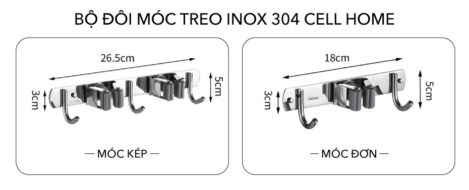 Bộ kẹp cây lau nhà với chất liệu làm từ inox 304 chuyên dùng cho các không gian thường xuyên ẩm ướt như phòng tắm có khả năng chống nước, chống han gỉ, chống ăn mòn, sức chịu lực cao khi treo các vật dụng khối lượng lớn và có thể tái chế. Phần đế của bộ móc treo Cell Home được thiết kế đặc biệt dày dặn hơn các loại miếng dán thông thường trên thị trường, bạn sẽ yên tâm khi sử dụng trong thời gian dài mà không bị biến dạng như các loại kém chất lượng khác.