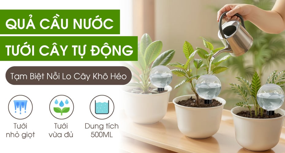 Quả cầu tưới cây tự động ra đời như một “cứu tinh” để xóa bỏ nổi lo của những ai yêu thích việc trồng cây nhưng lại sợ không có thời gian để chăm dưỡng. Đây không chỉ là một dụng cụ làm vườn, mà là cách bạn mua sự an tâm với công nghệ tưới nhỏ giọt thẩm thấu và cơ chế canh độ ẩm đảm bảo lượng nước vừa đủ cho cây. Dung tích 500ml của quả cầu đủ lượng nước cho cây cả tuần này cũng giúp bạn được tự do đi du lịch dài ngày, tập trung vào công việc mà không cần lo lắng về "sức khỏe" của những cây xanh trong nhà. Với những thiết kế thông minh trên sẽ giải quyết triệt để nỗi lo cây chết do thiếu hoặc thừa nước, giúp bạn tận hưởng trọn vẹn niềm vui làm xanh không gian mà không mất đi sự tự do cá nhân.