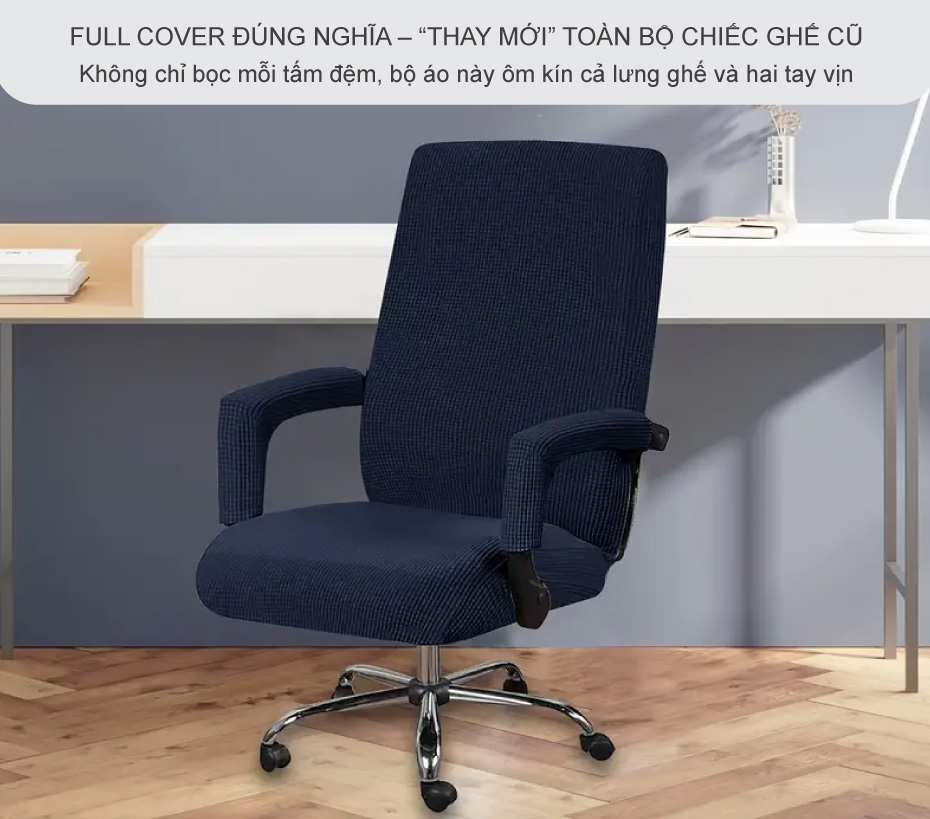 Vỏ bọc ghế văn phòng co giãn full ghế – ôm trọn đệm, lưng và tay vịn, chống trượt chống bụi: